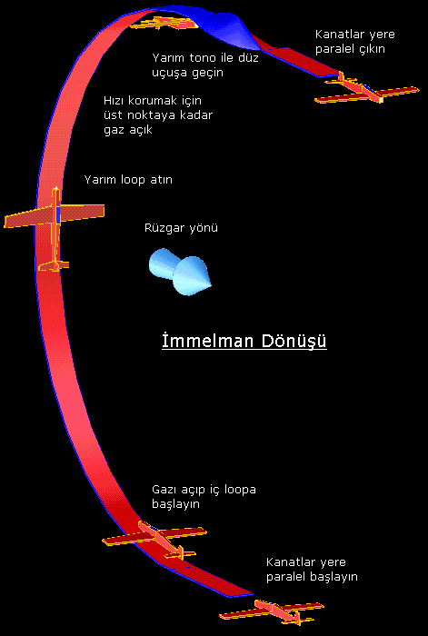 Modifiye edilmiş immelman da ise önce çeyrek loop sonra yarım tono,tekrar çeyrek loop ve ardından yarım tono ile düz çıkış.Bu hızı azaltır.İrtifayı arttırır ancak yön değişmez.